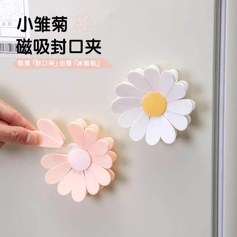 磁吸小雏菊封口夹零食密封夹个性花瓣创意立体式冰箱贴食品袋夹子