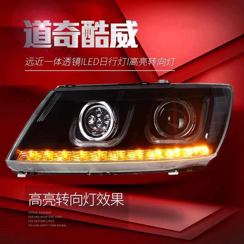 适用于道奇酷威大灯总成 菲跃改装LED日行灯转向灯透镜氙气大灯