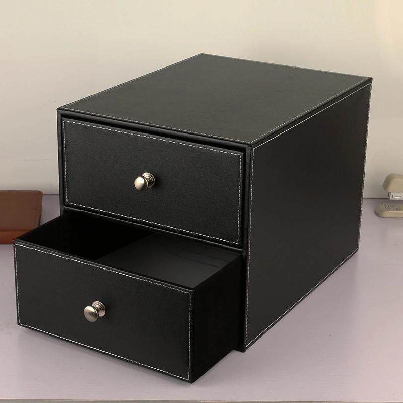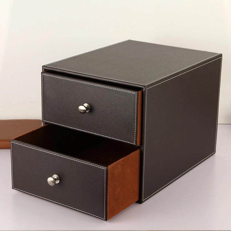 新品 WUQA皮质桌面杂物整理收纳盒 抽屉式办公室文件收纳储物柜