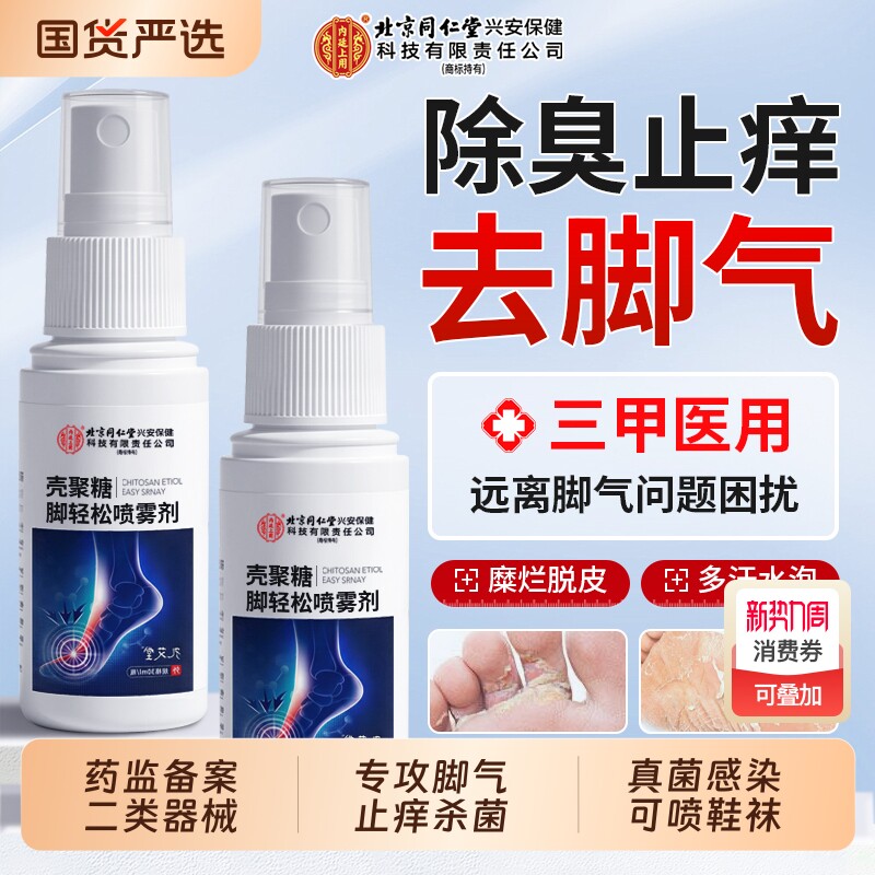 北京同仁堂脚气止痒脱皮杀菌真菌感染喷雾烂脚丫脚后跟干裂角化型