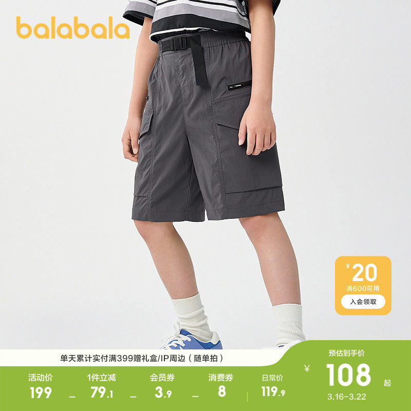 巴拉巴拉童装儿童中裤男童宽松短裤2026夏款凉感工装薄款透气潮酷