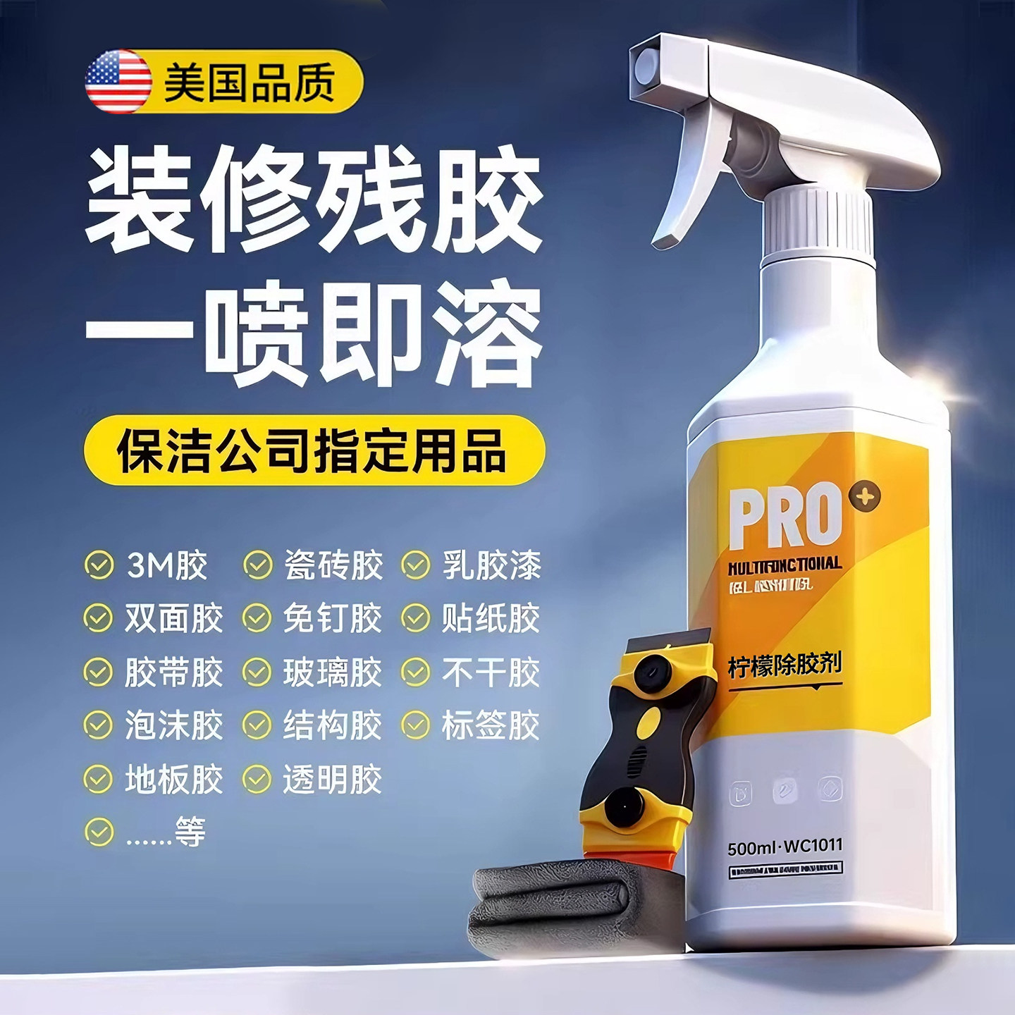 美国强力除胶剂家用万能去胶清除剂汽车玻璃胶带粘痕溶解开荒保洁