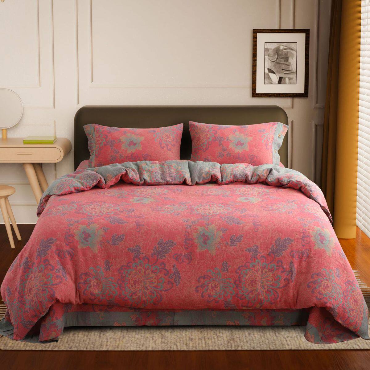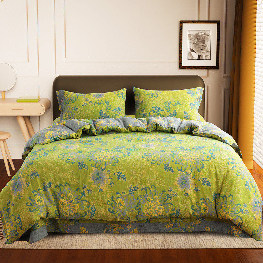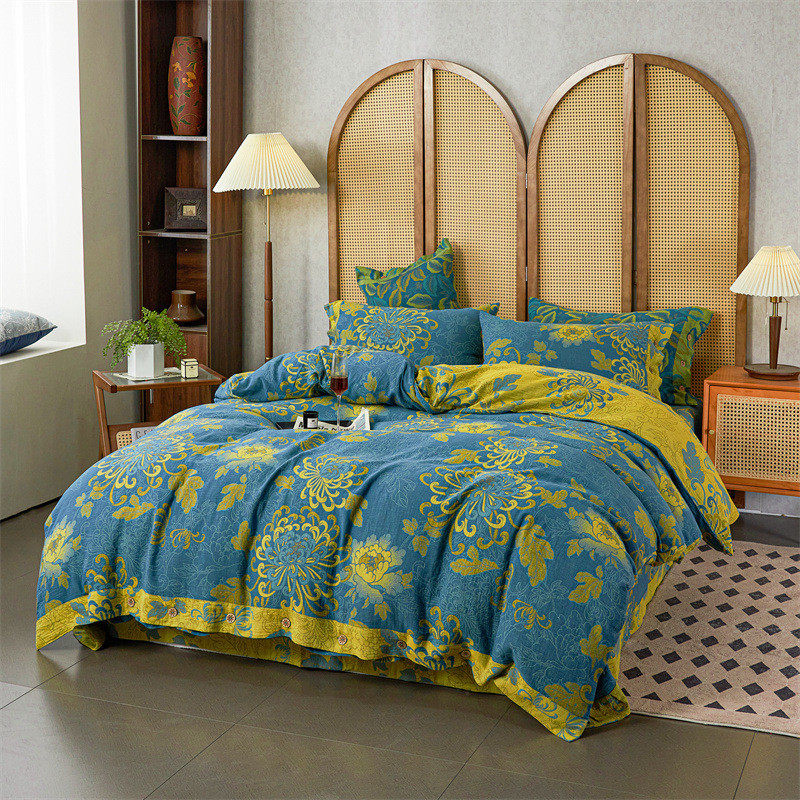直播新款全棉色织提花双层纱四件套床上用品床单被罩母婴批发