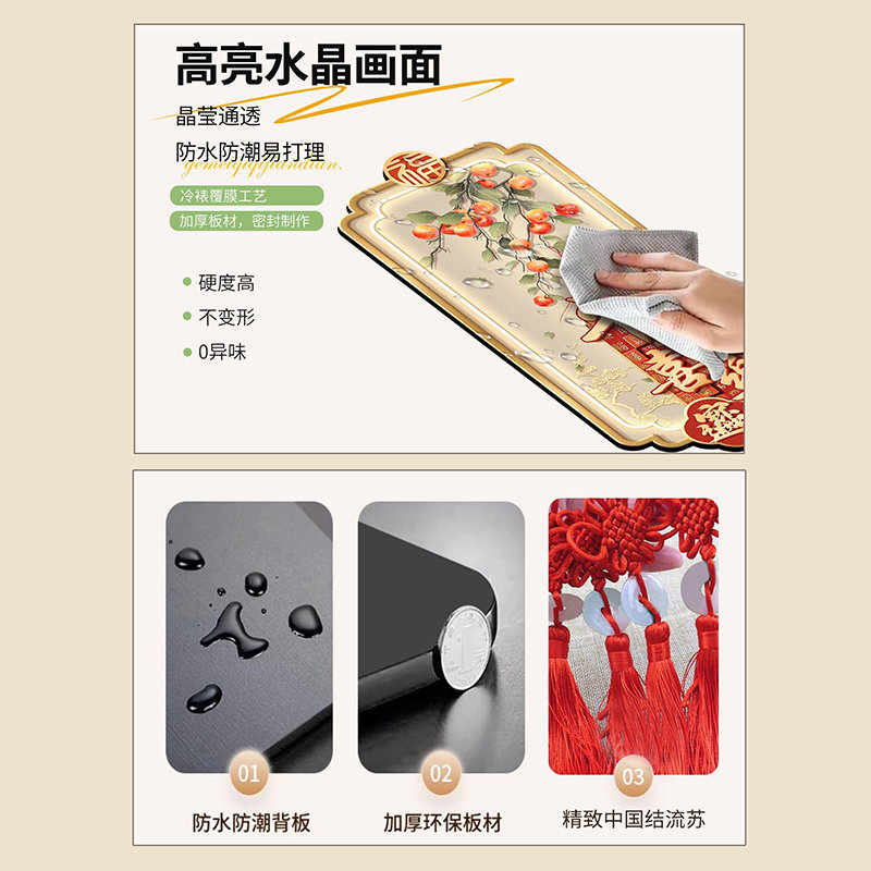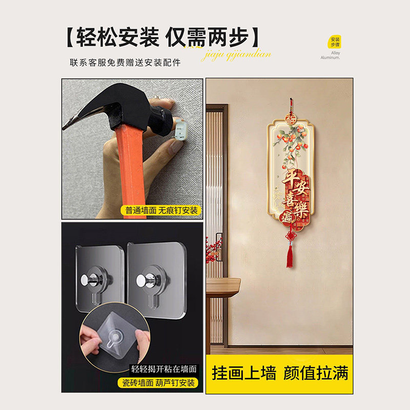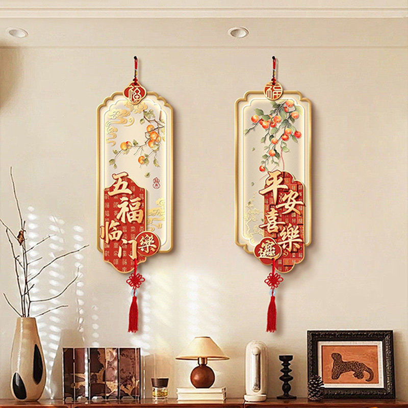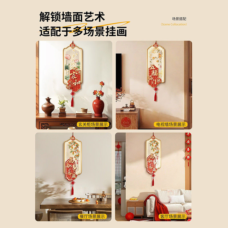新中式入户玄关装饰画新年喜庆立体墙画平安喜乐走廊过道流苏挂画