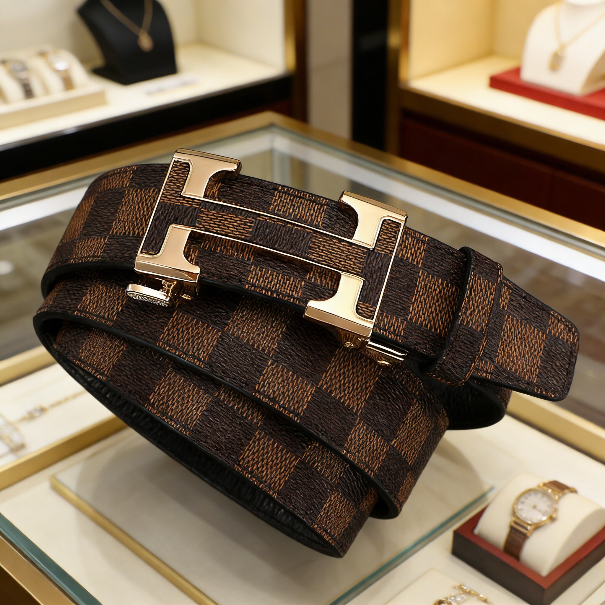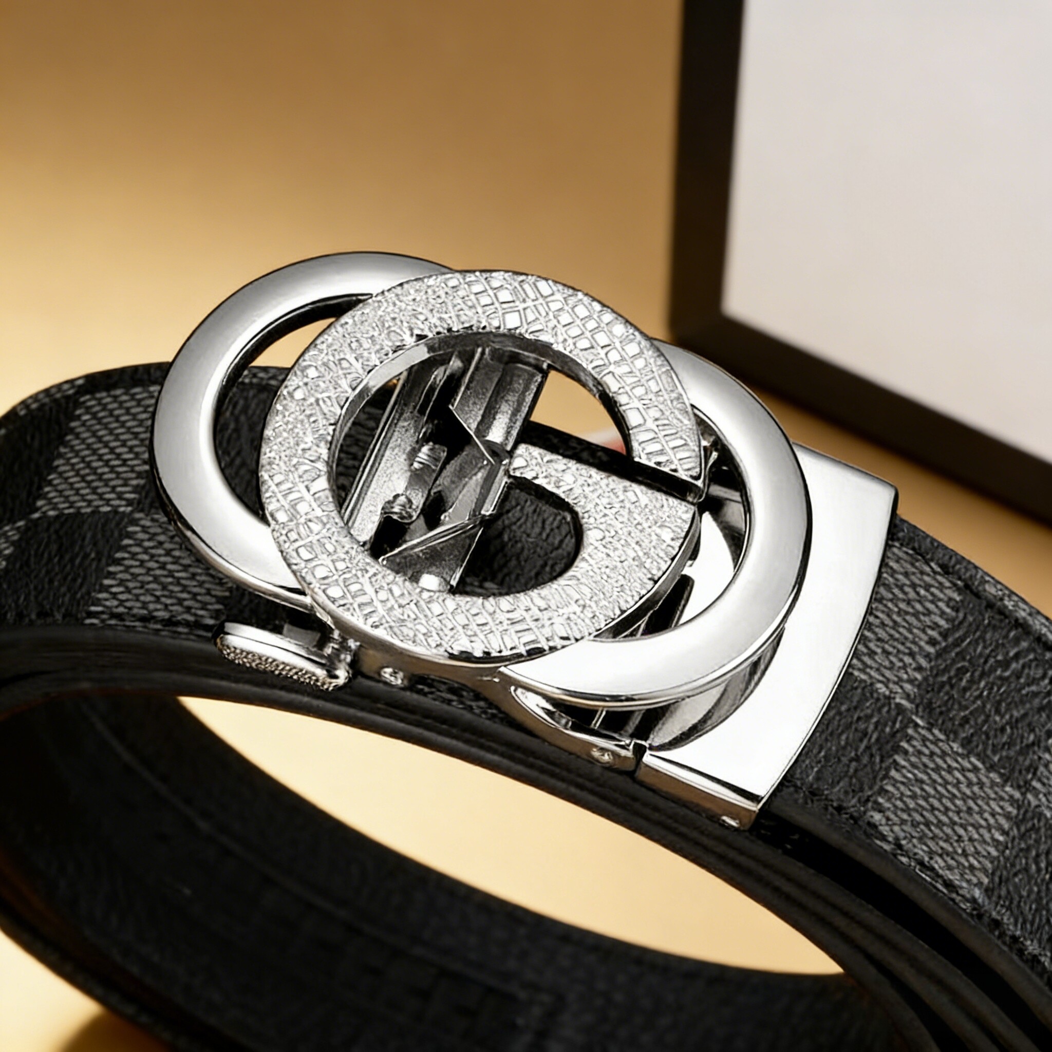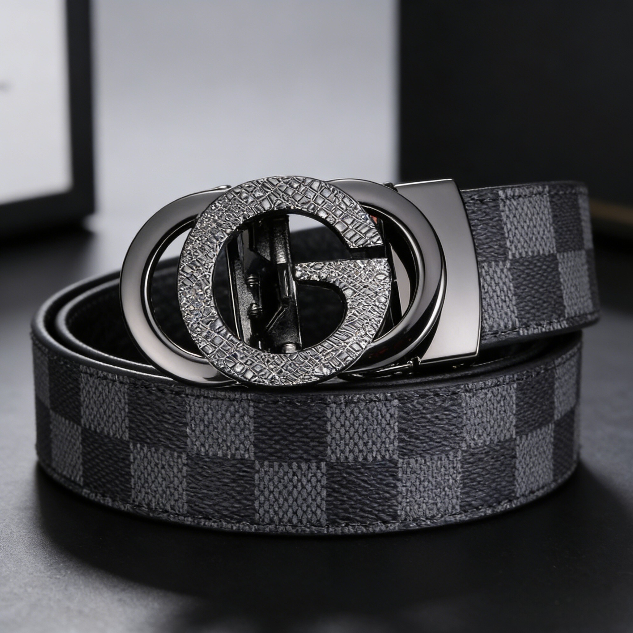 男士真皮腰带高档字母2025新款格纹自动扣商务皮带