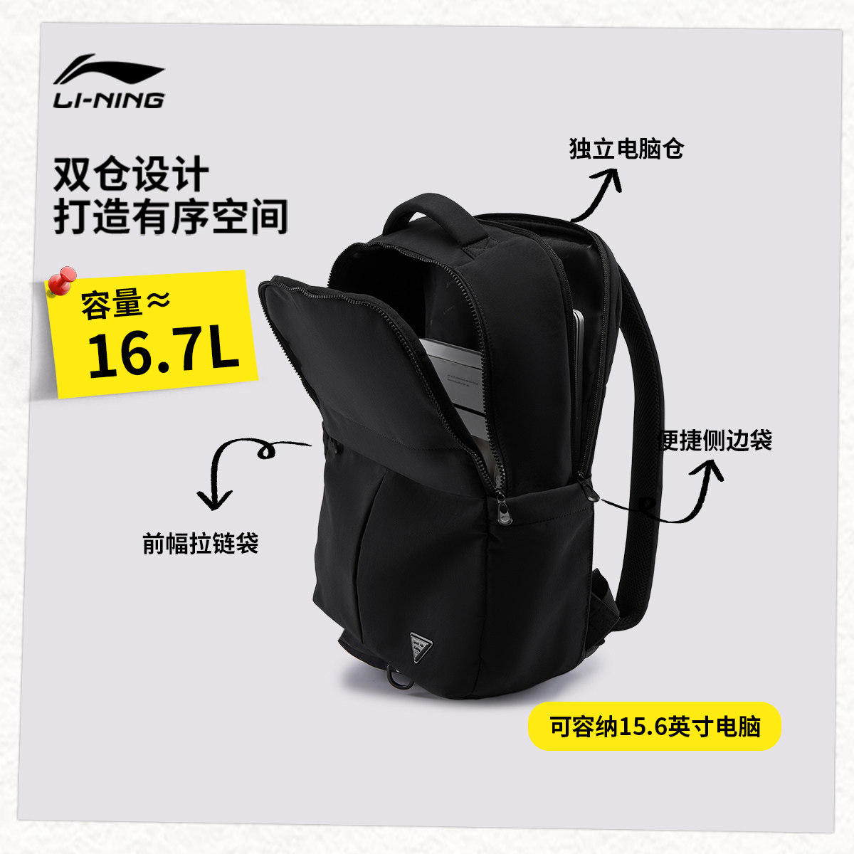 李宁双肩包男女2026新款上班通勤出差旅行轻便背包学生书包运动包