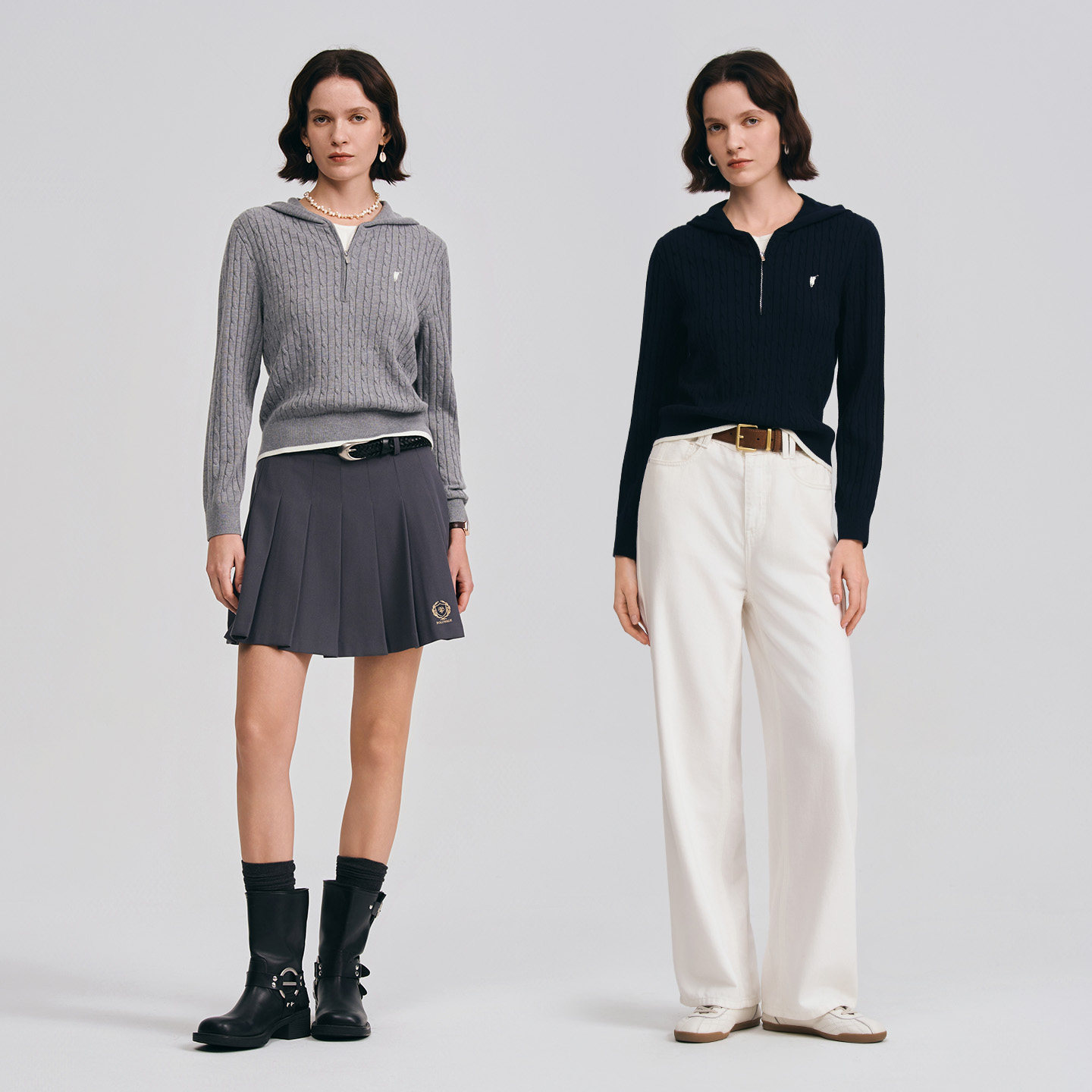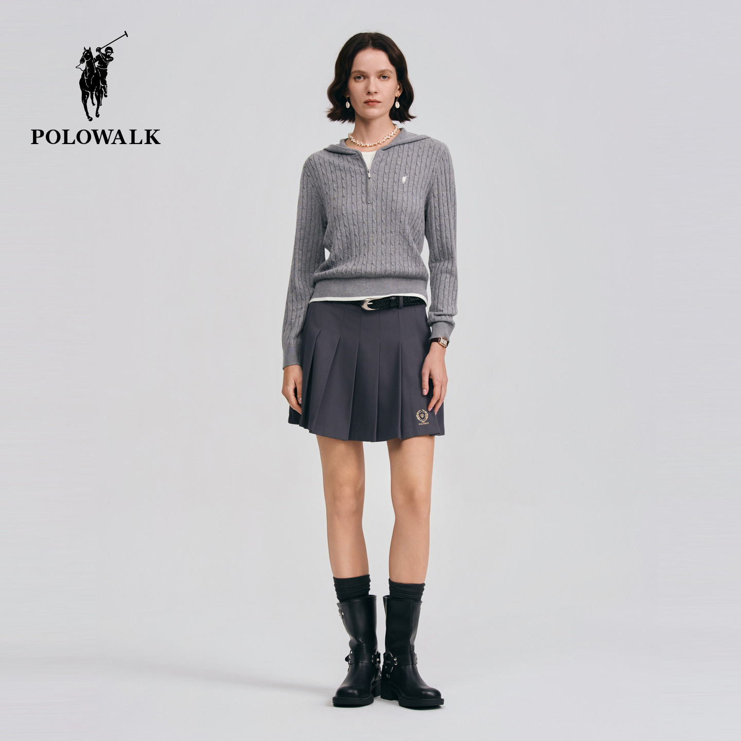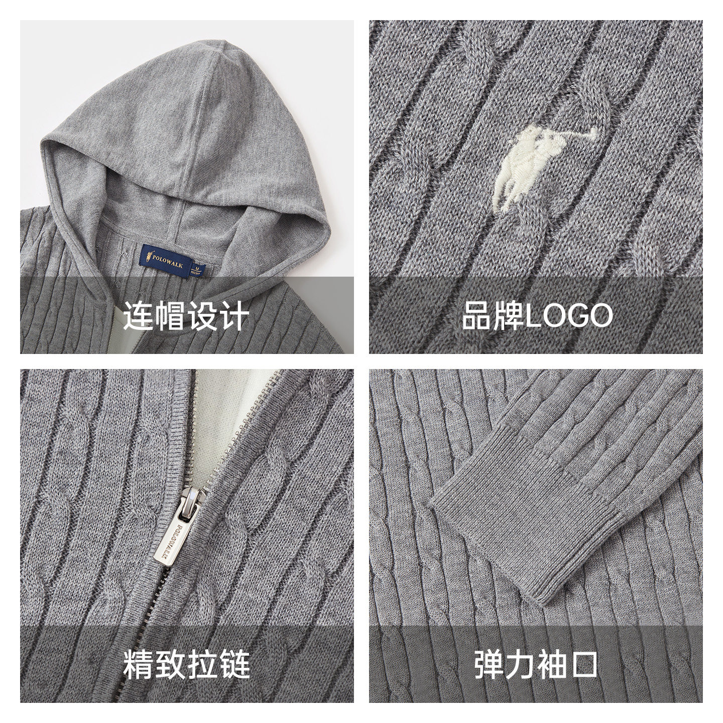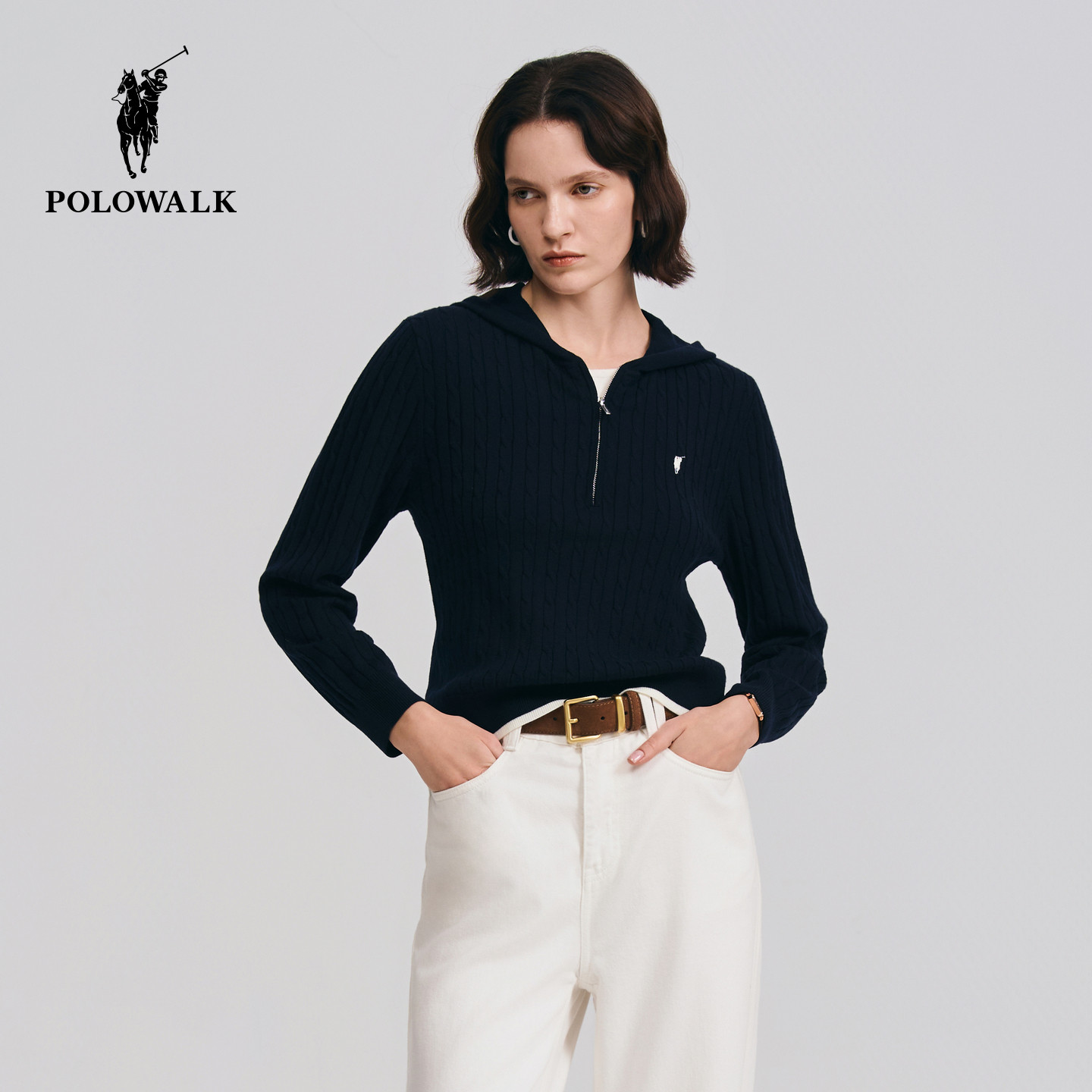 POLOWALK女装针织衫2026春季新款女士长袖绞花针织衫连帽套头毛衣