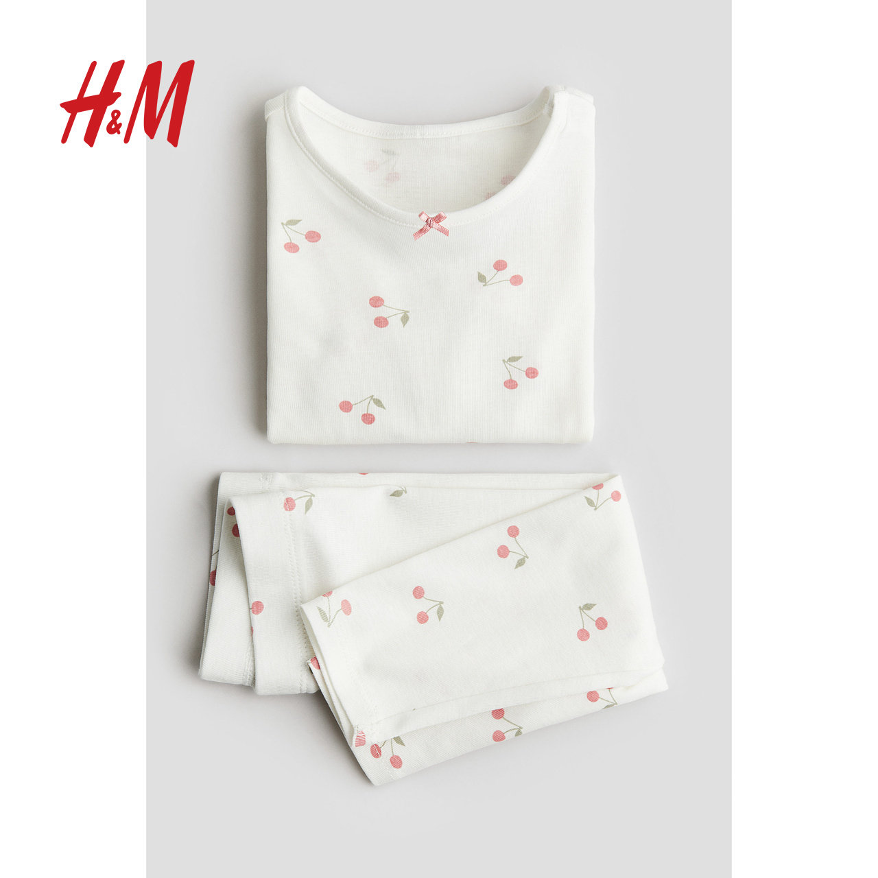 HM童装女婴套装2件式冬季可爱印花长袖睡衣睡裤1143149