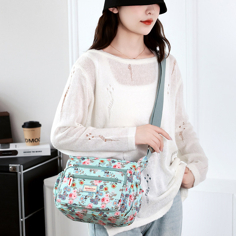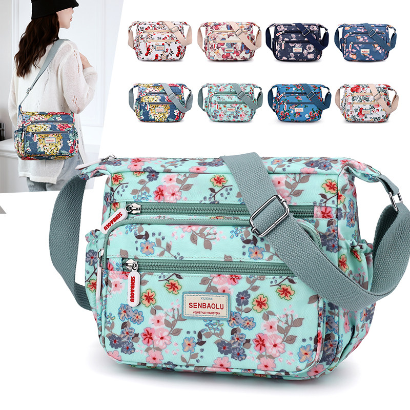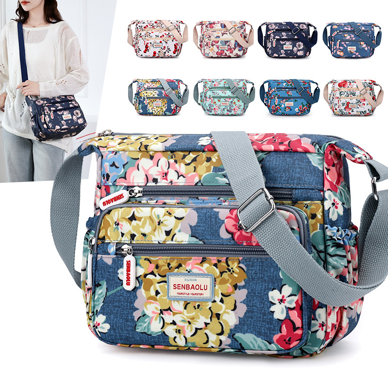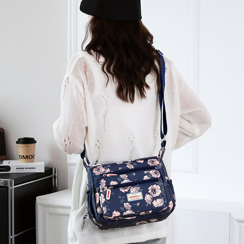 莫黛薇牛津布多层包中年妈妈包印花帆布斜挎包大容量休闲单肩挎包