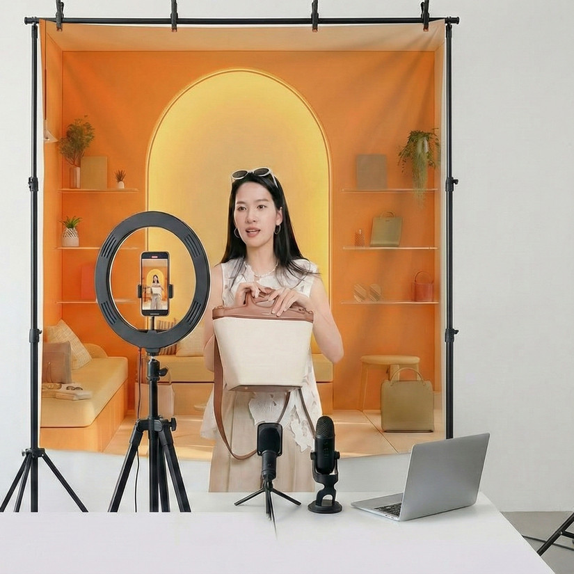 直播间加厚无纺布材质背景布主播背景墙布摄影拍照背景纸背景布暖色中式直播间专用背景布3D立体背景挂布