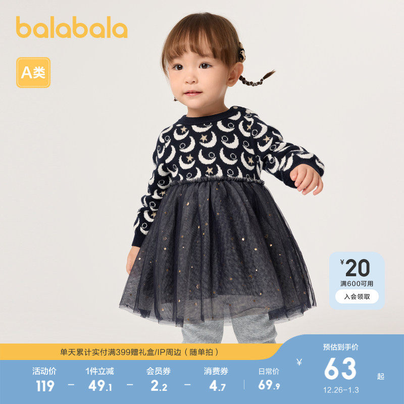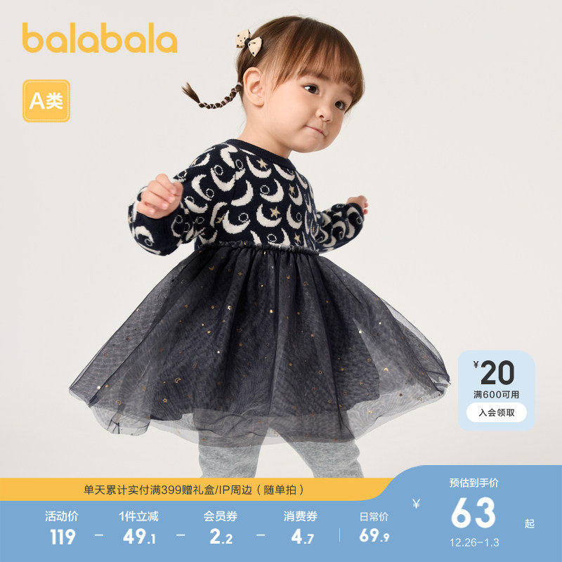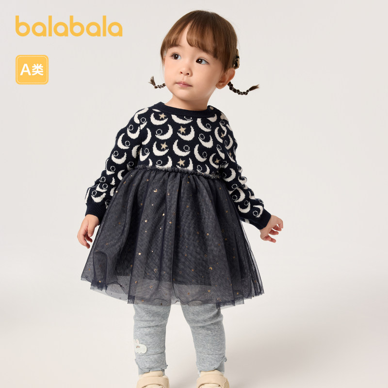巴拉巴拉童装宝宝裙子公主裙洋气儿童秋冬连衣裙拼接纱裙精致洋气