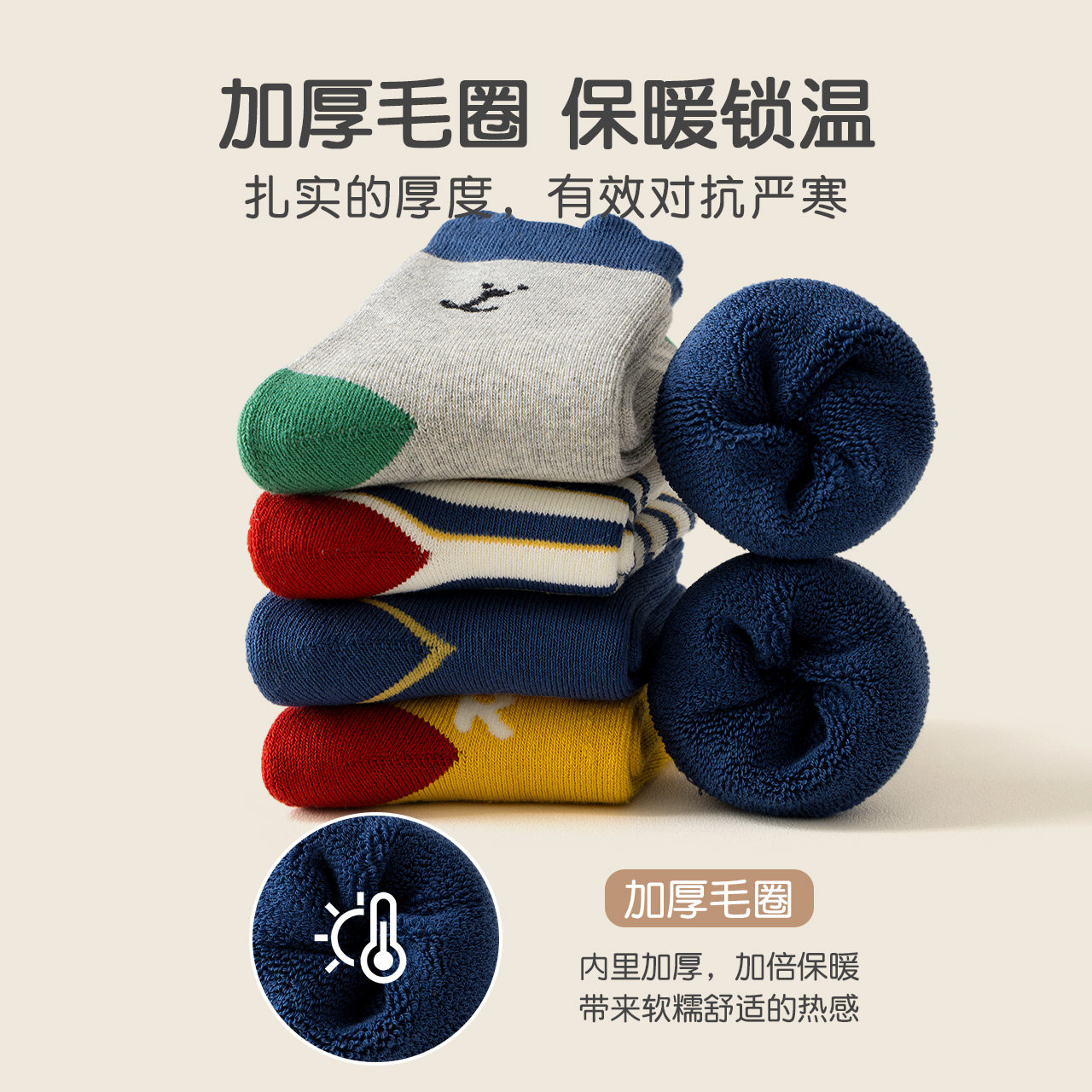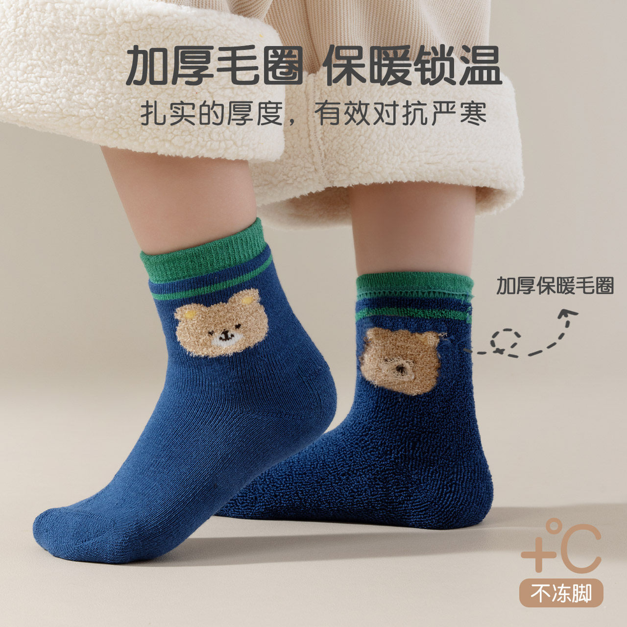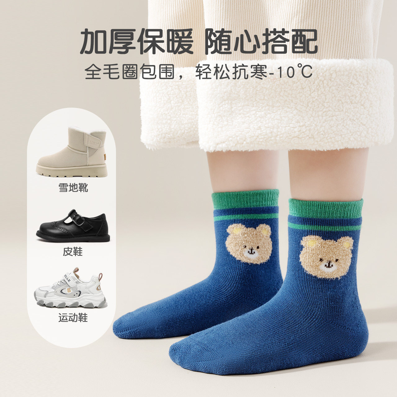 caramella儿童秋冬袜子男童袜子纯棉毛圈保暖棉袜男孩宝宝中筒袜