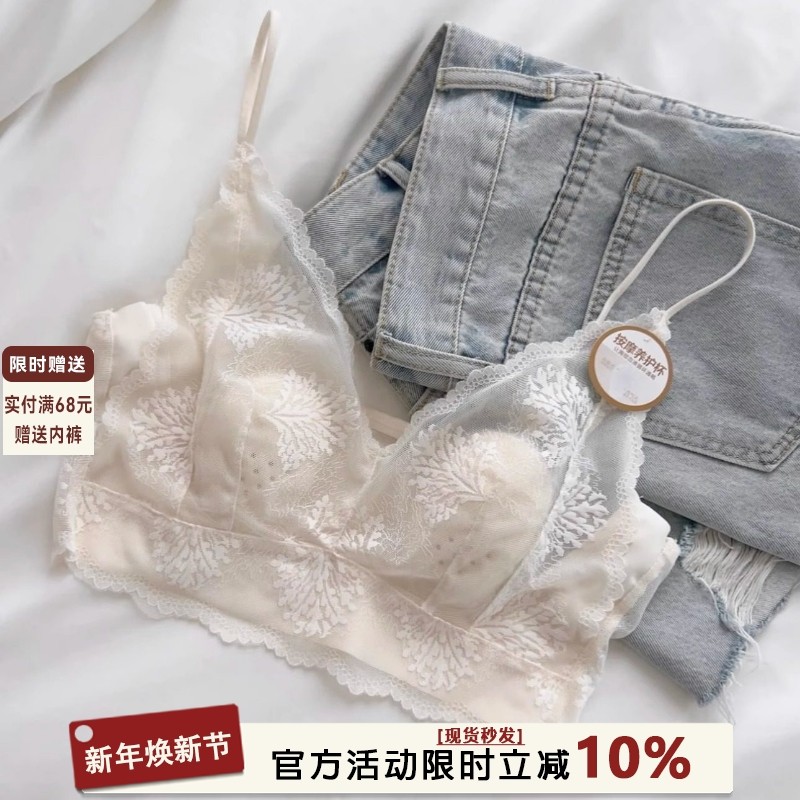 法式性感蕾丝内衣女兔耳杯夏季薄款大胸显小无痕吊带裹胸美背文胸