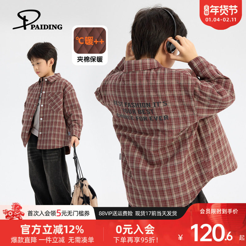 派町童装男童衬衫2025秋冬季新款儿童格纹潮衬衣夹棉加厚保暖外套
