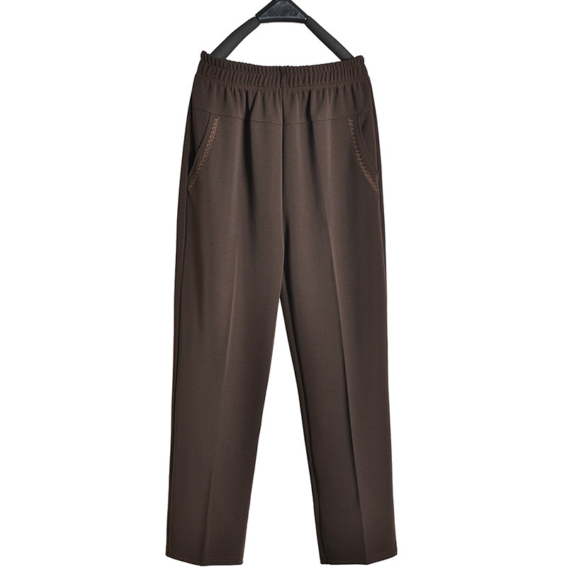 妈妈裤子春秋款松紧高腰弹力中老年女裤宽松大码直筒奶奶加绒长裤