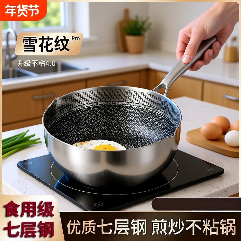 家用雪平锅不锈钢奶锅炒锅不粘煮面锅汤锅不粘锅电磁炉燃气食品级