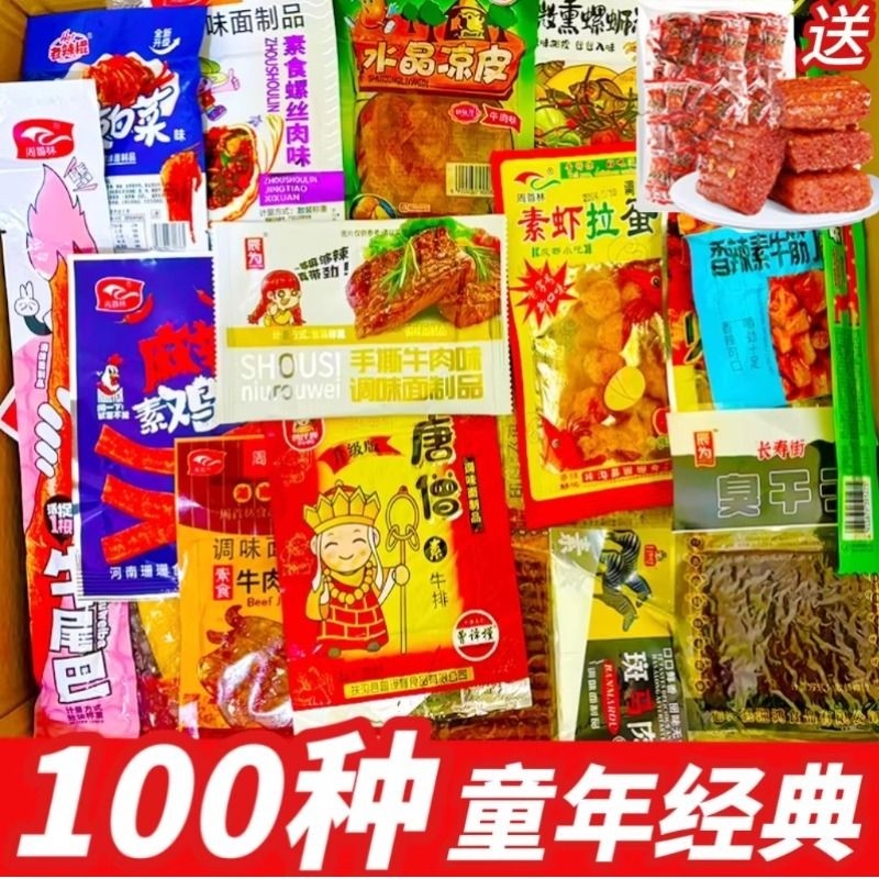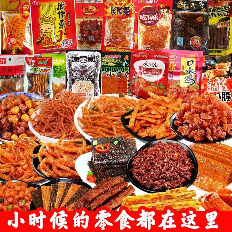 童年辣条大礼包怀旧多种混合装小吃办公室分享装素牛肚脆骨烤鸭