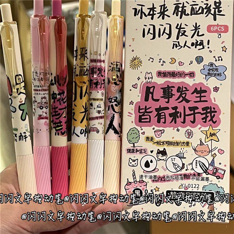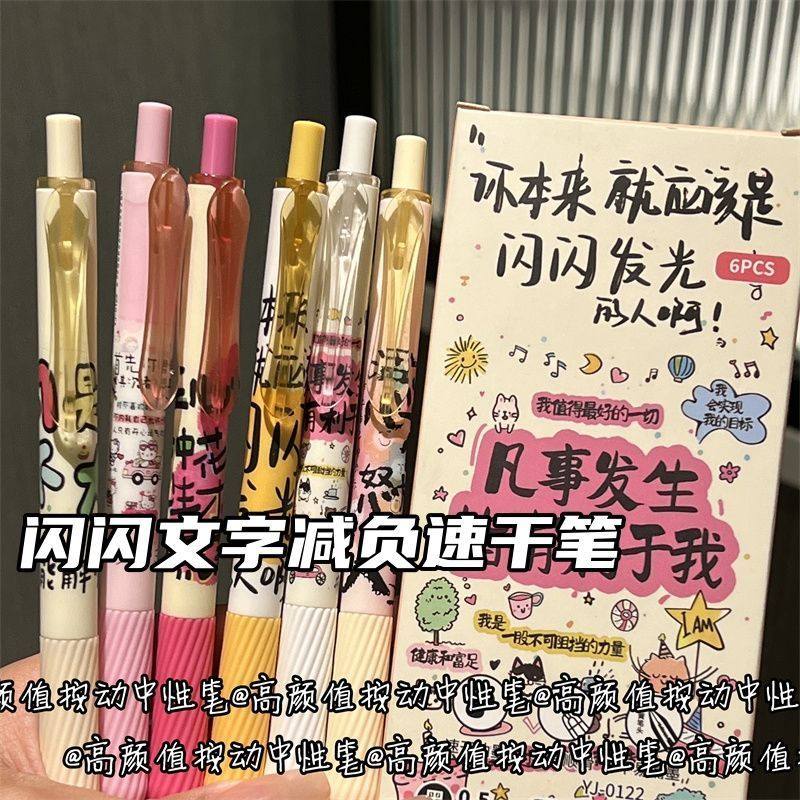 闪闪文字减负按动中性笔少女心学生0.5st高颜值顺滑可爱考试黑笔