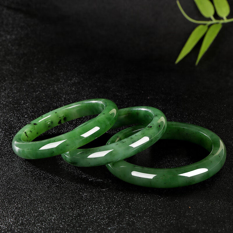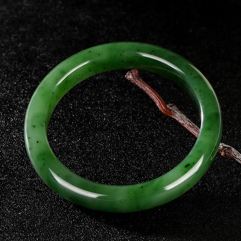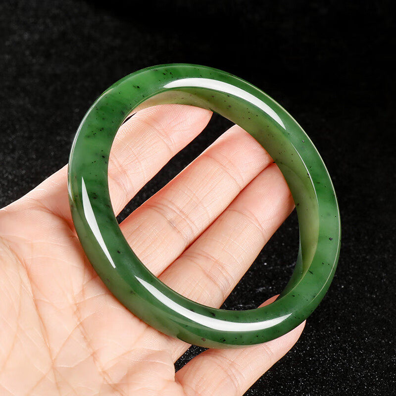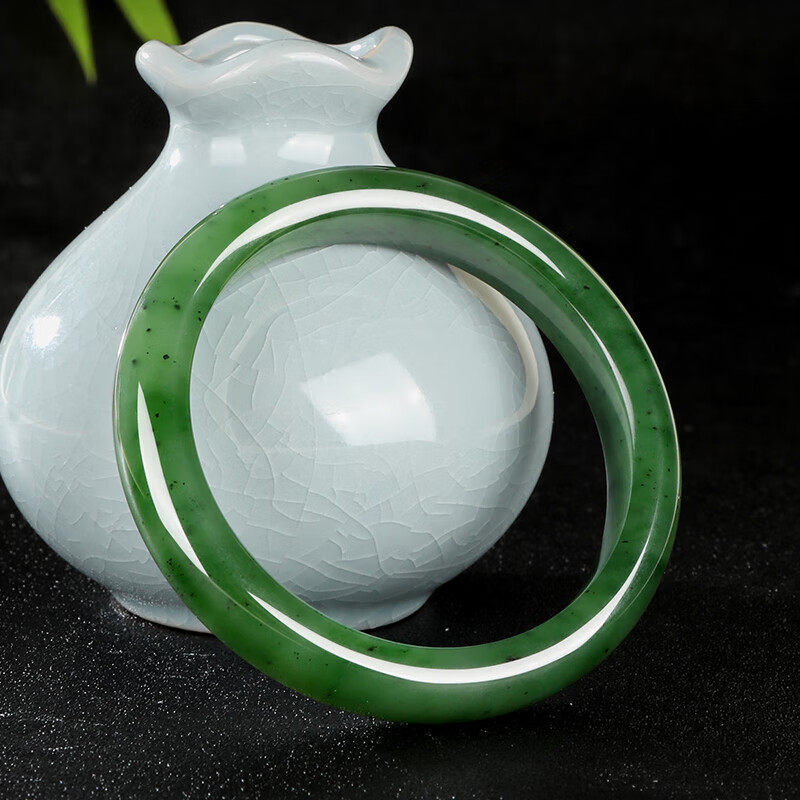 新疆和田玉手镯俄料老坑碧玉镯子菠菜绿国风送妈妈女友礼物多规格