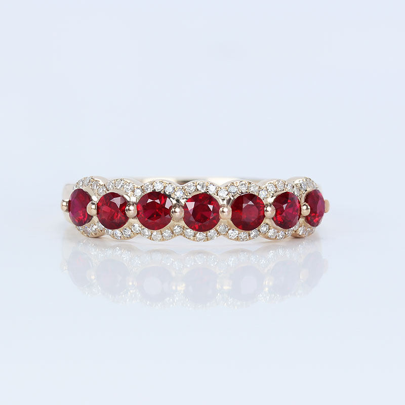 18K玫瑰金天然鸽血红宝石钻石排戒 正圆形高火彩女款戒指指环定制