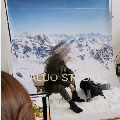 新款冬季雪山风景室内雪景拍照背景布直播婚纱影楼摄影道具背景纸