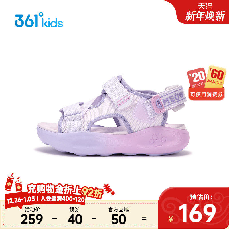 【商场同款】361°童鞋女童休闲沙滩凉鞋2025年夏季新款中大童