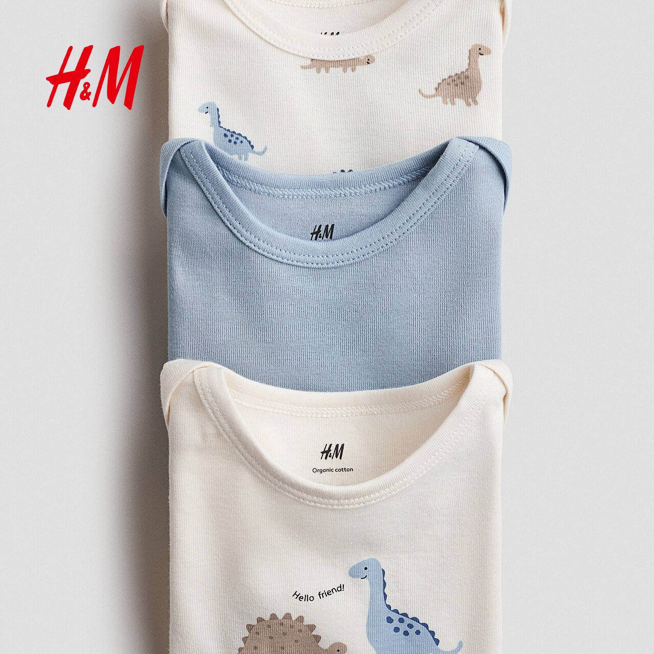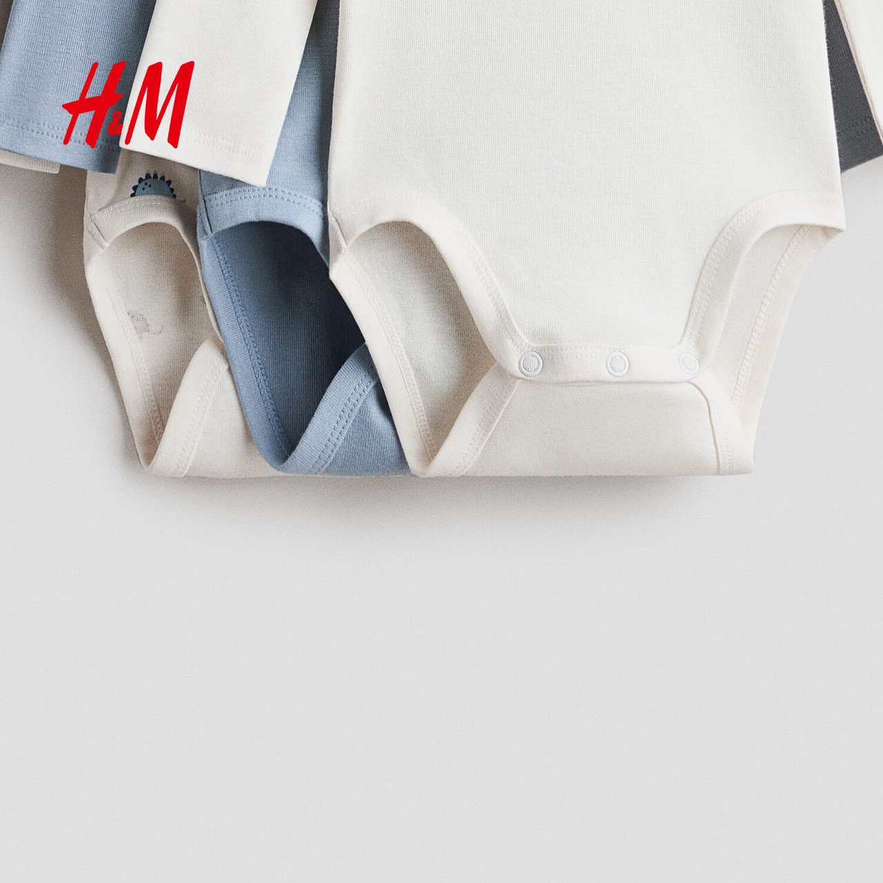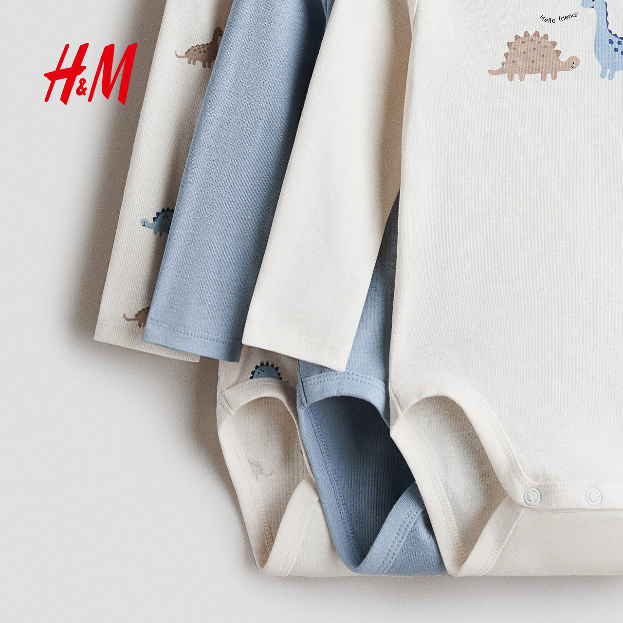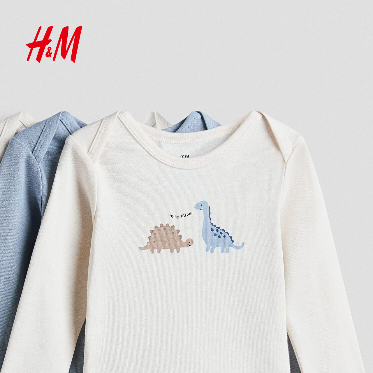 HM童装男婴连身衣3件装春季出游内着长袖印花汗布哈衣爬服1265824