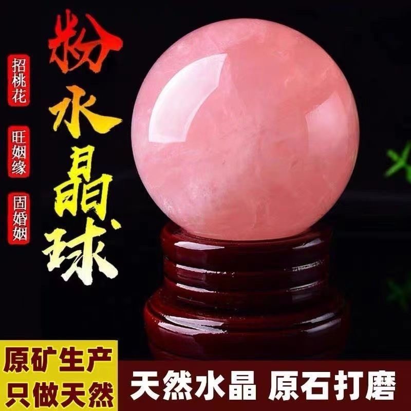 lisv天然粉水晶球摆件粉晶水晶原石客厅办公室装饰品开业乔迁礼品