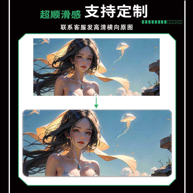 禁欲系美女鼠标垫腿超大电竞游戏防滑男定制键盘垫子女仆二次元女
