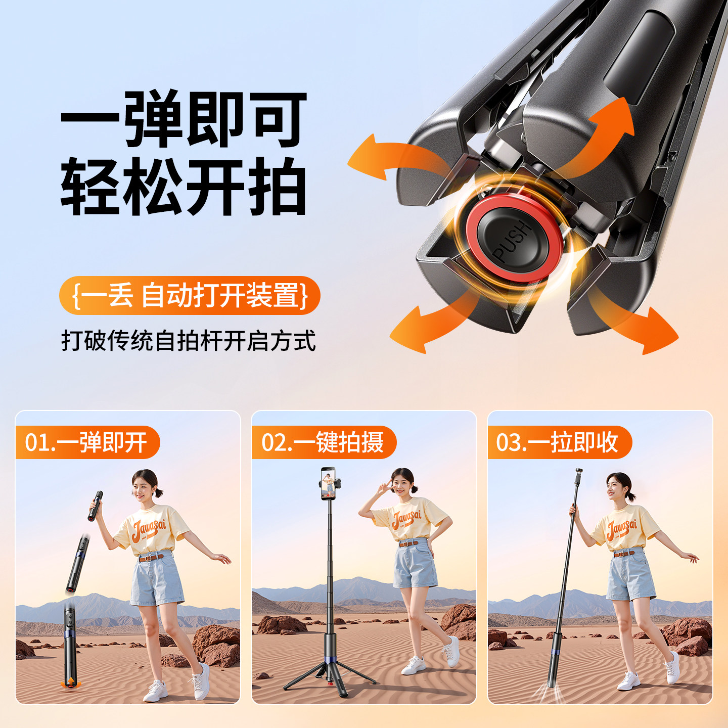 2025新款自拍杆三脚架防抖手持手机直播支架蓝牙遥控便携迷你旅游