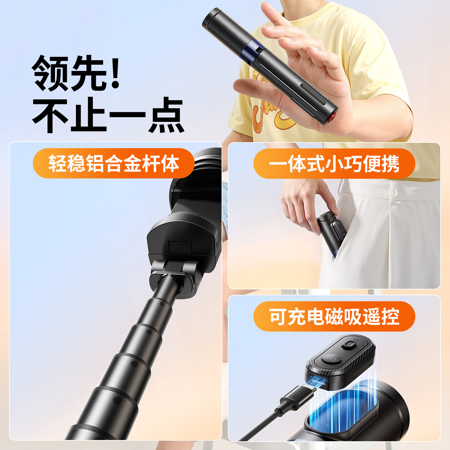 色刻CX A磁吸自拍杆2025新款迷你旅游便携手机通用支架360度旋转自拍神器拍照防抖蘋果专用Magsafe落地三脚架