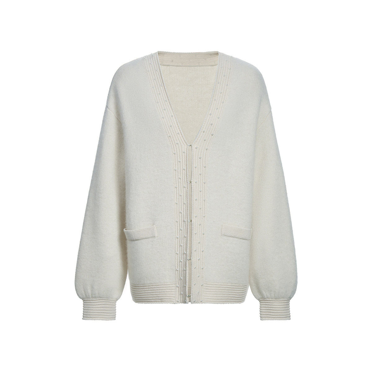 【季末折扣】欧时力 貂绒混纺慵懒风开衫针织外套女钉珠秋冬尖货