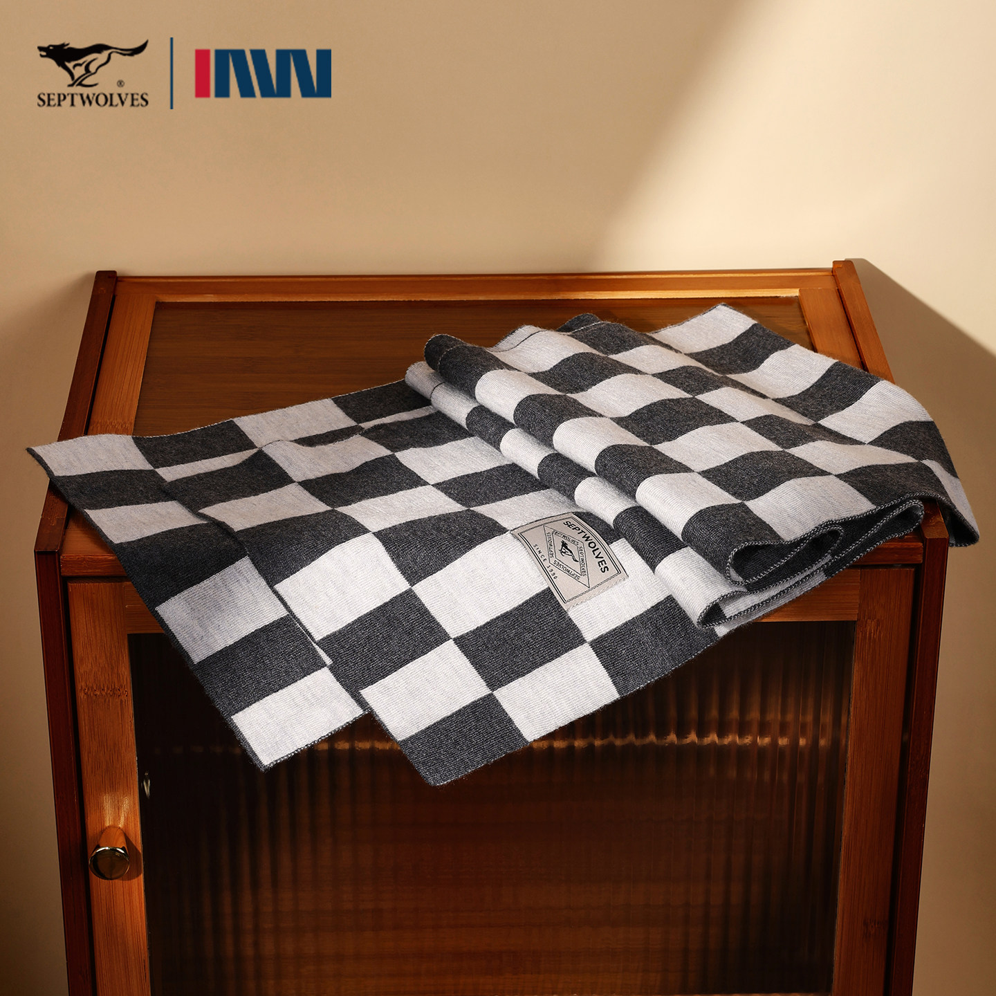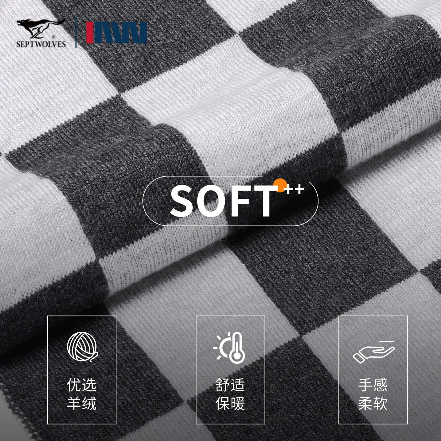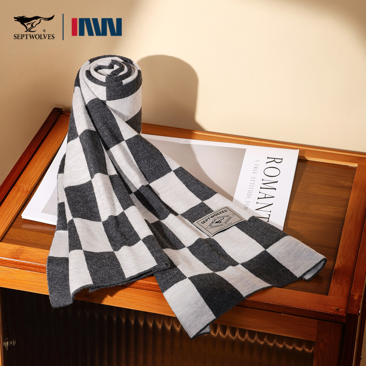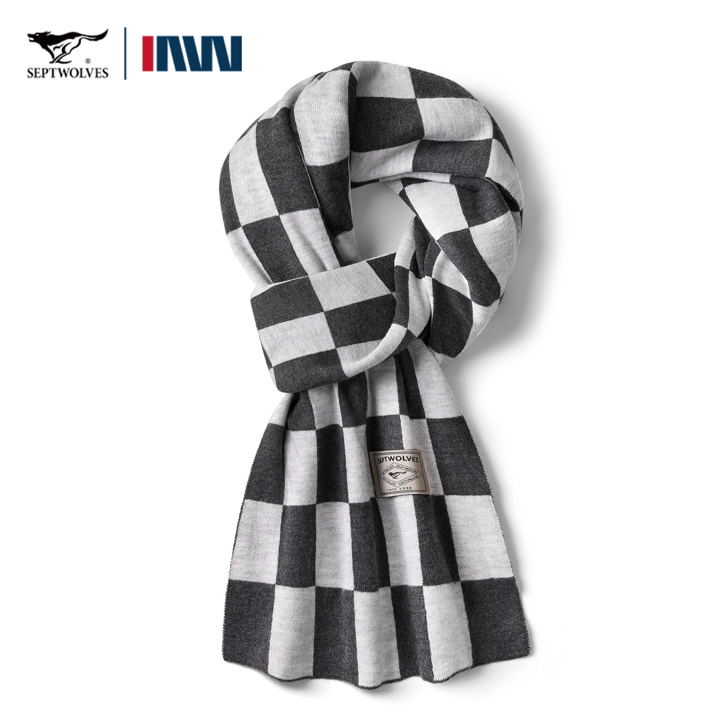 七匹狼格子围巾男款春季加厚保暖高档休闲柔软羊毛男士围脖礼盒装