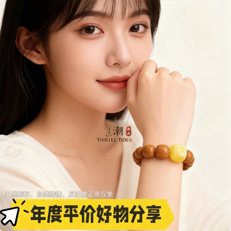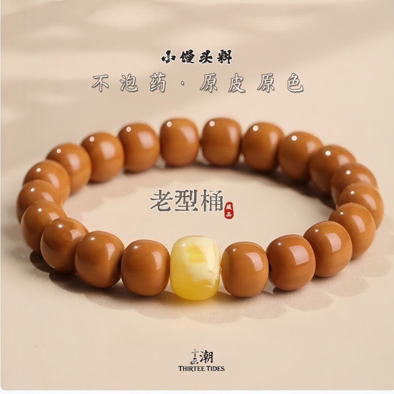 THIRTEE TIDES/13·潮无药无染猴头正圆雕刻老型桶珠核桃手串单圈