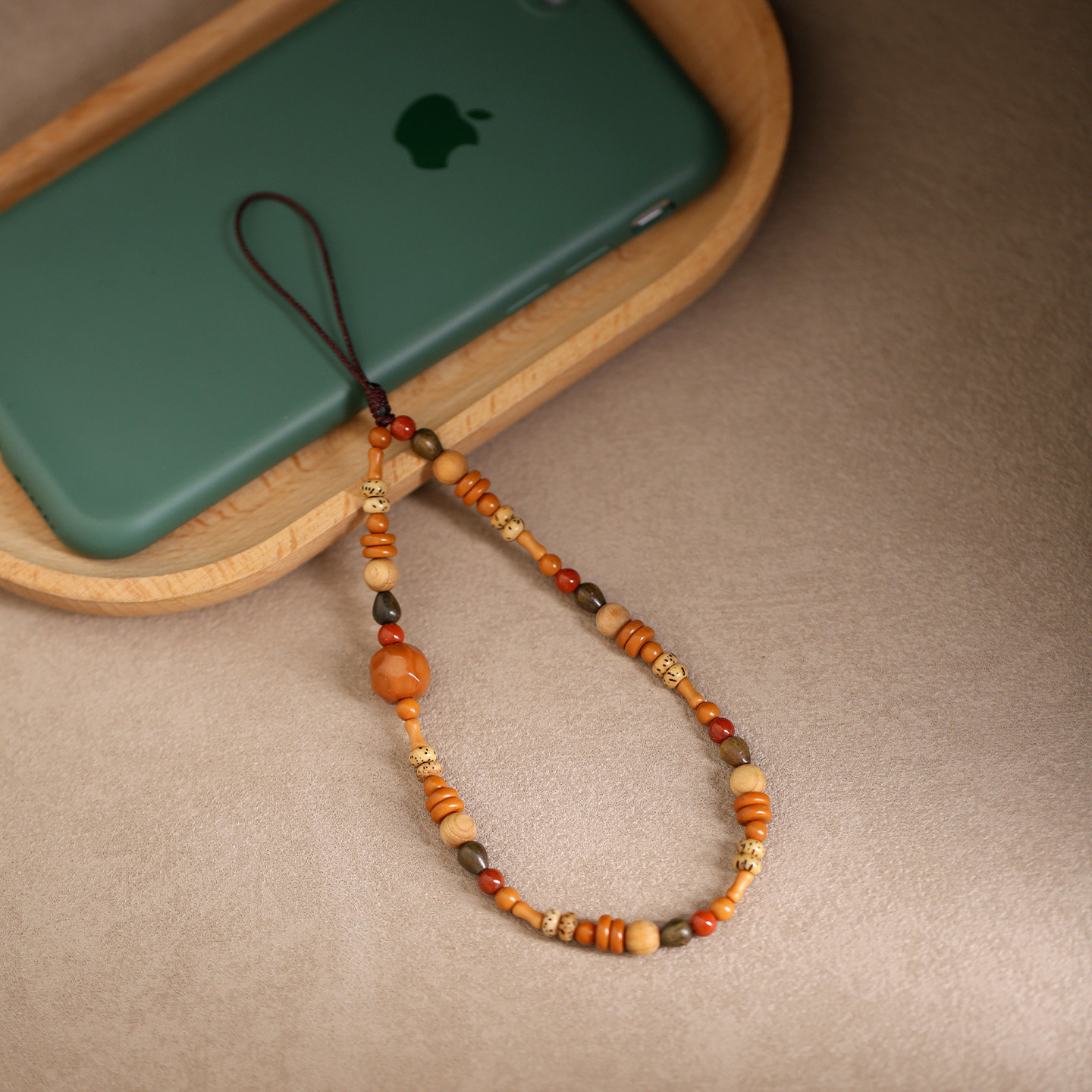 檀木菩提手机挂绳复古国风手机链手腕绳男女款挂件精致挂饰防丢绳