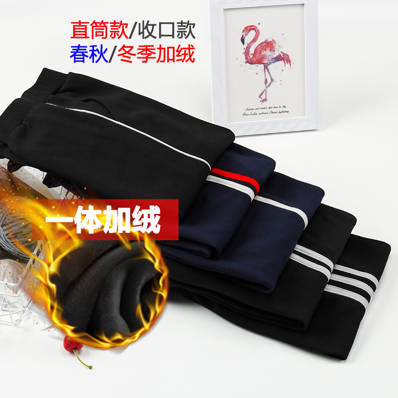 中小学生校服裤子加绒藏蓝色一道杠长裤儿童女男童运动裤三两条杠