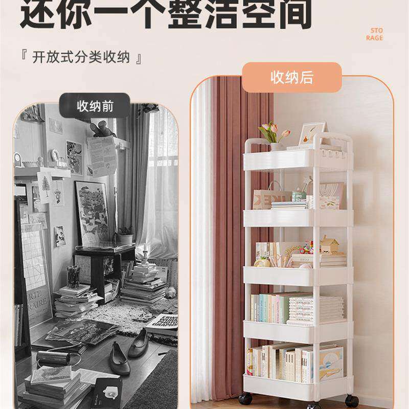 书架落地置物架储物柜客厅靠墙杂物柜小型简易多层可移动书柜零食