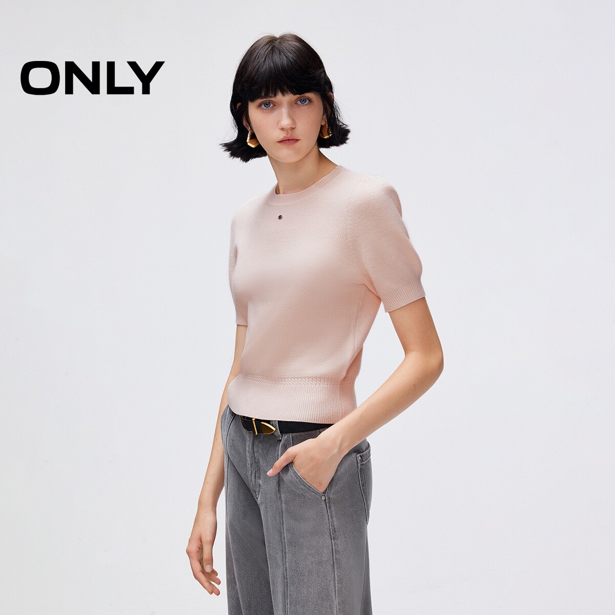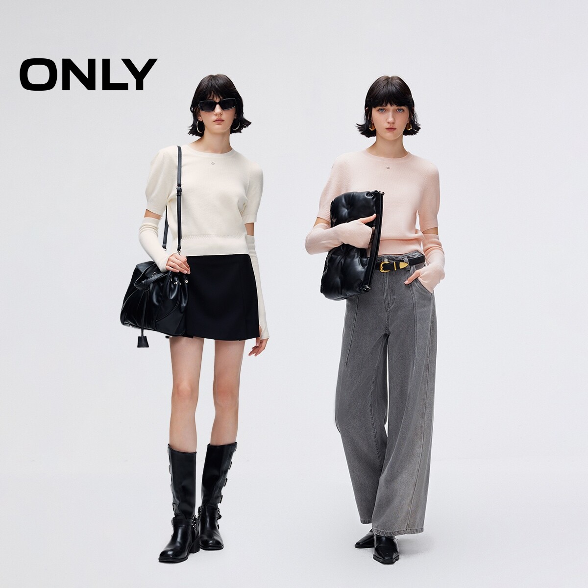 【ONLY奥莱】春季甜美马卡龙色泡泡袖可拆卸袖套软糯亲肤针织衫女