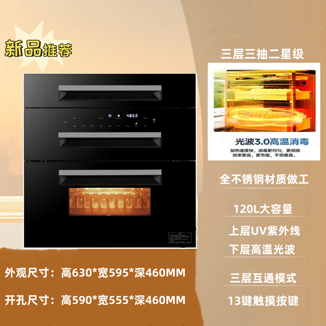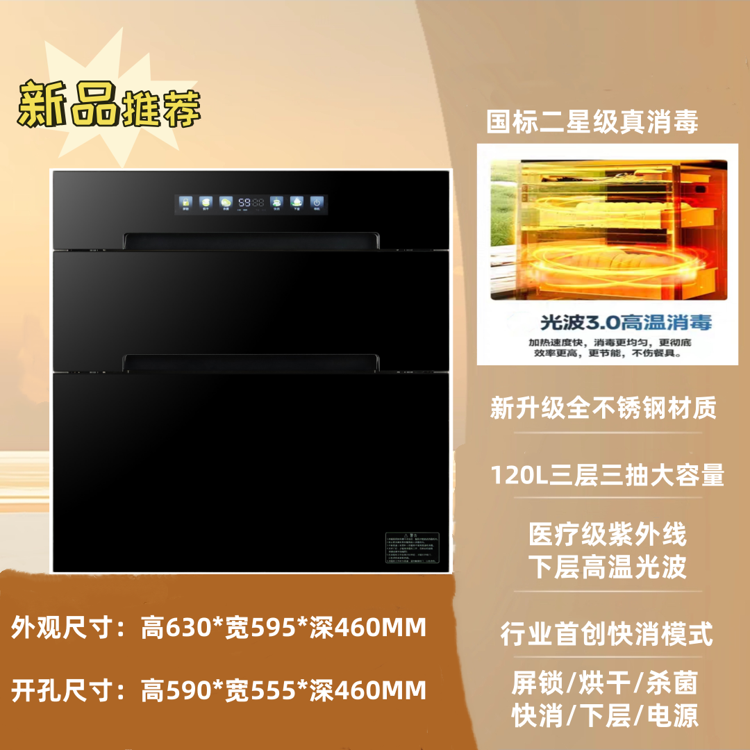 好太太消毒柜家用嵌入式130L大容量厨房紫外线二星不锈钢消毒碗柜