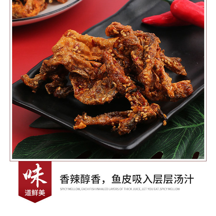 香辣鱼皮网红零食小吃即食蜜汁鳕鱼皮海鲜鱼仔甜辣鱼干办公室零食