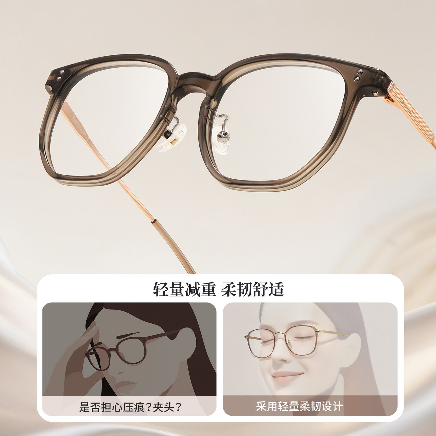 loho冷茶色素颜超轻眼镜女近视可配度数防蓝光大脸高级感眼睛镜框