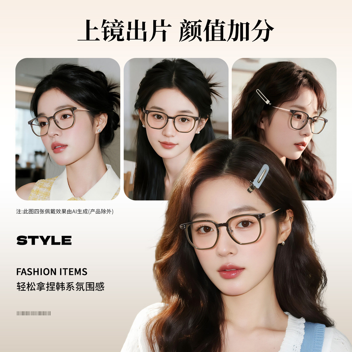 目戏冷茶色眼镜近视女专业可配度数可选防蓝光镜片眼镜框镜架5018
