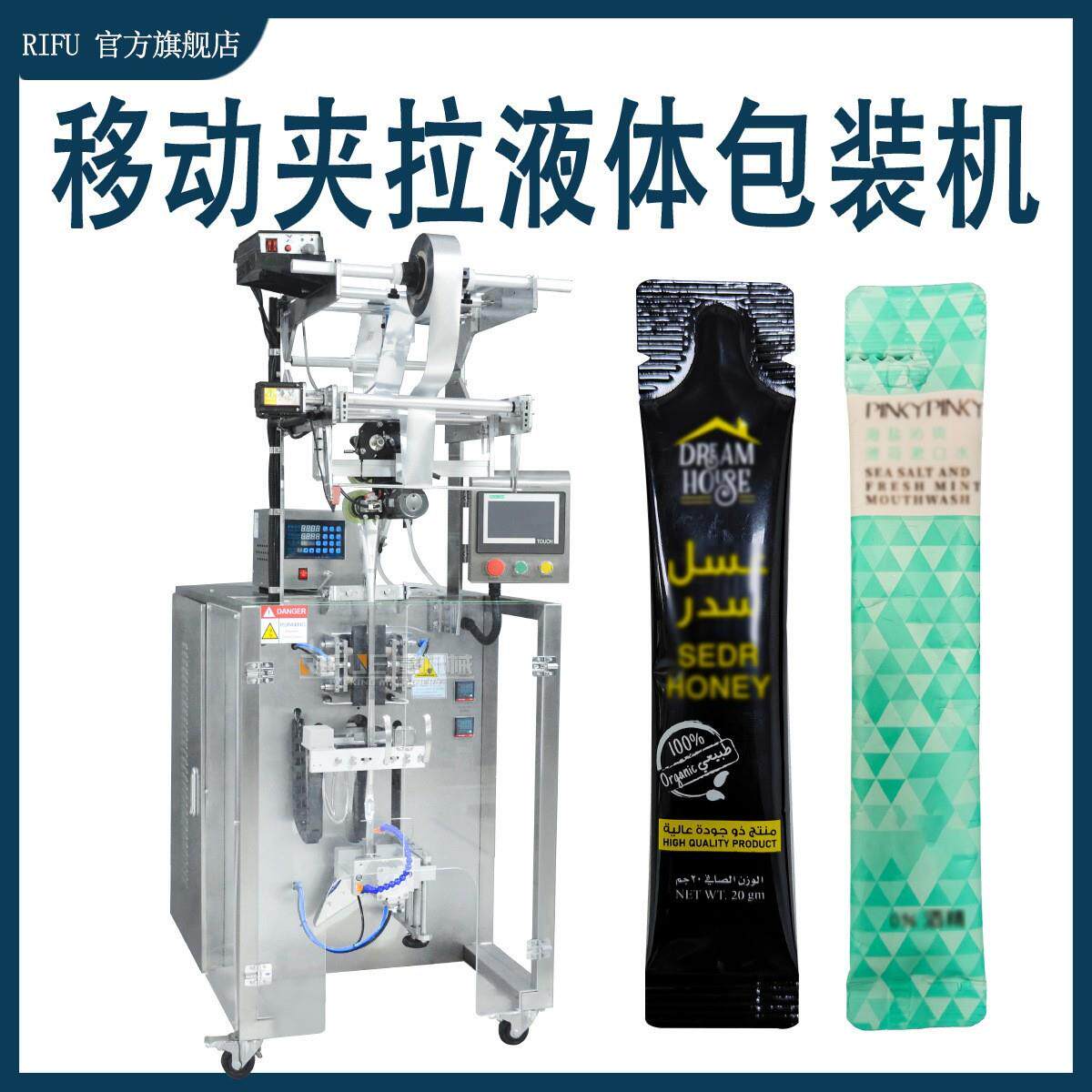 全自动移动夹拉圆角液体包装机咖啡液漱口水蜂蜜酱油果酱包装机