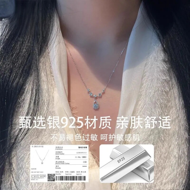 中国黄金央创人鱼之泪纯银项链女款轻奢小众锁骨链生日送女友S925