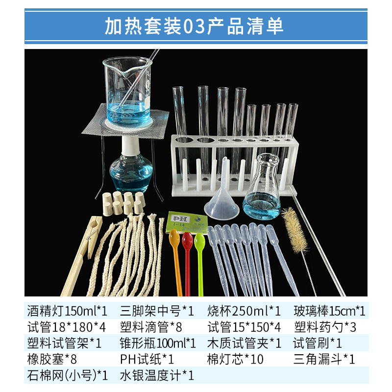 儿童趣味科学化学实验器材酒精灯漏斗烧杯玻璃棒试管加热全套装