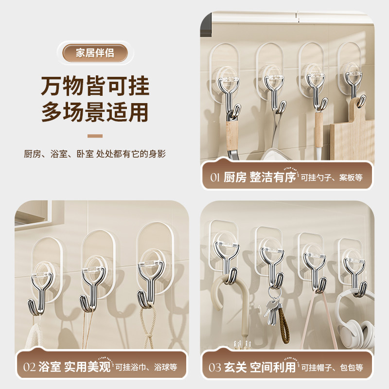 百草园粘钩免打孔强力承重厨房挂钩吊钩无痕墙壁贴墙浴室墙上钩子