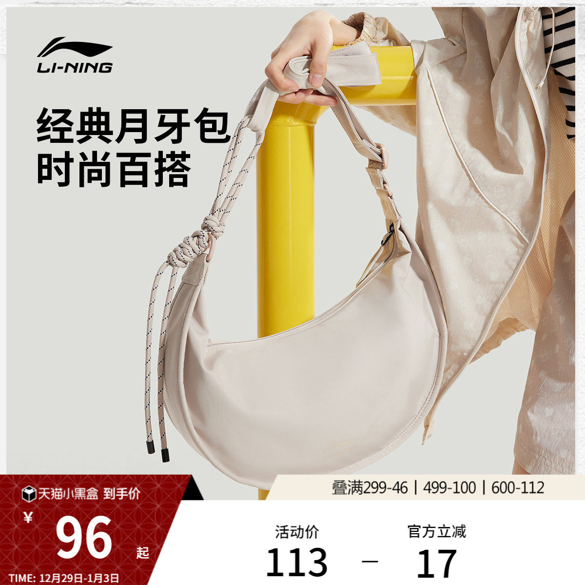 李宁斜挎包女正品百搭马年红色饺子包通勤运动休闲单肩腋下牛角包