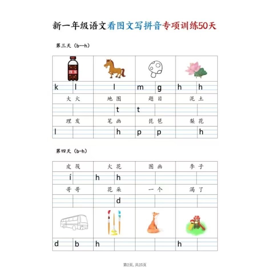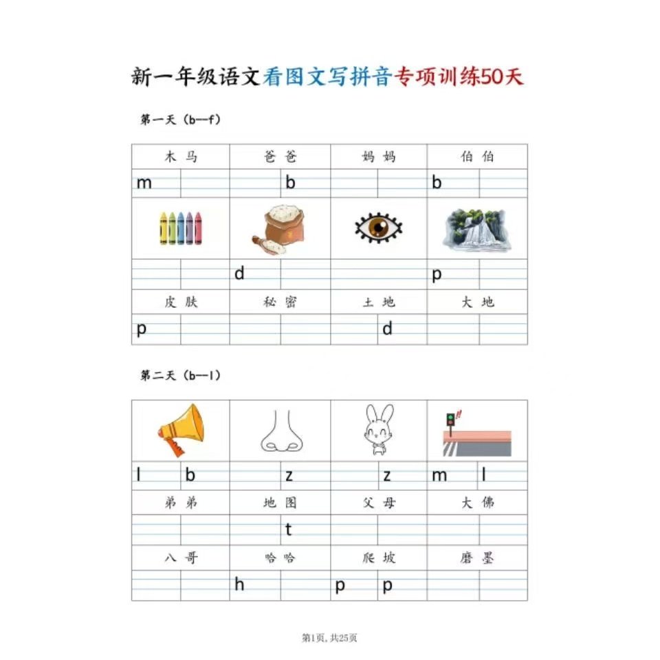 一年级上册看图写话专项训练50天看图写话每日打卡A4彩印