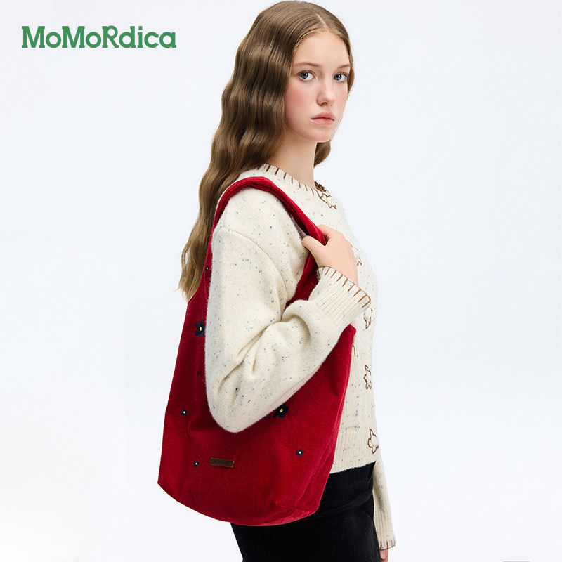 Momordica2025秋季新款复古百搭通勤单肩包时尚都市风棉感单肩包
