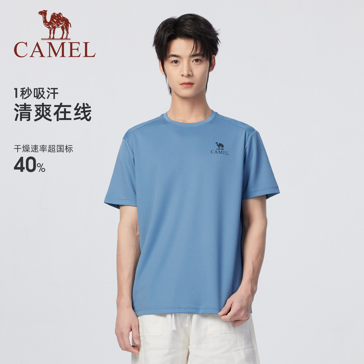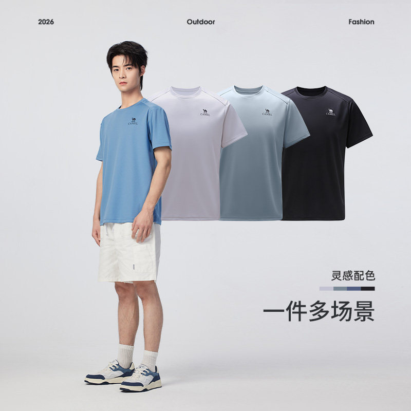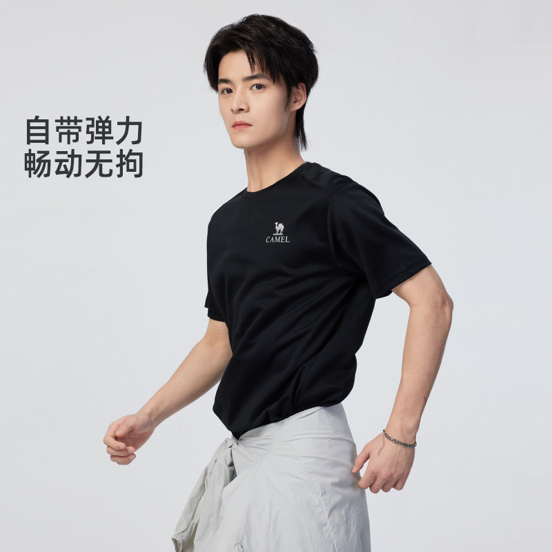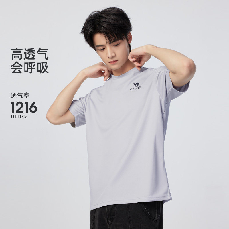 骆驼男装短袖t恤男款上衣夏透气中年爸爸纯色圆领上户外运动速干
